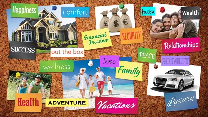 A Vision Board is a collection of images representing the life you dream of and helping you to manifest this goal. It is designed to open your mind to the endless possibilities of your imagination and to awaken you to creating exactly what you want. Here are some suggestions about how to go about this Vision Board: